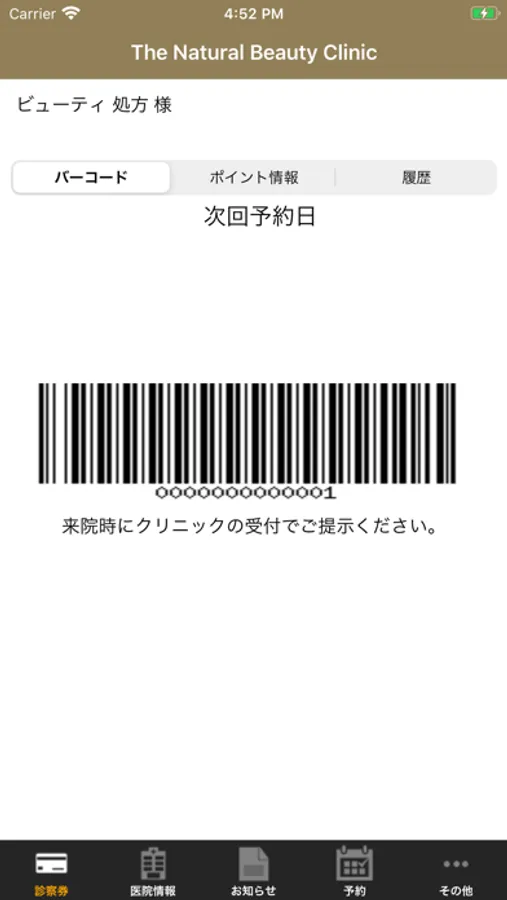 The Natural Beauty Clinicの電子診察券です。