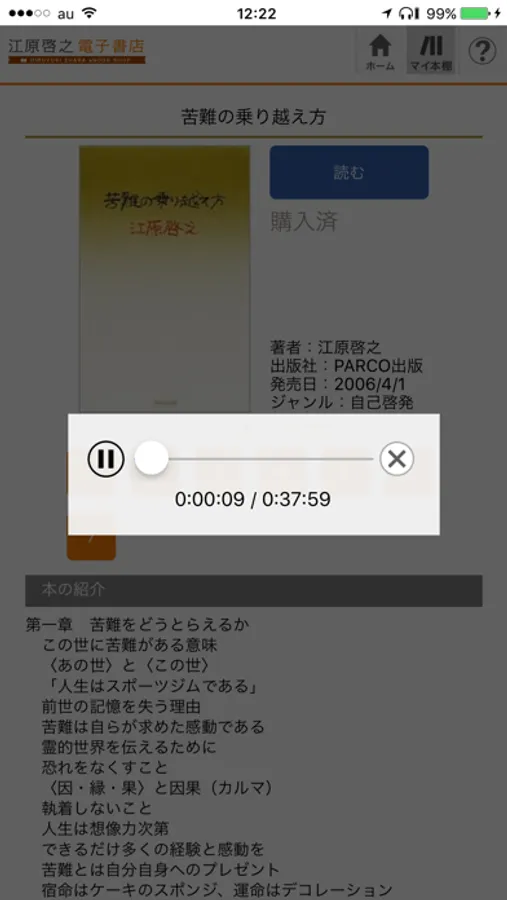 簡単操作で一度ダウンロードすれば、通信なしでサクサクと読むことも可能。音声付の書籍は、江原啓之本人の合成音声による書籍の朗読を聴くこともできます。書籍情報や書籍のレビューも掲載。