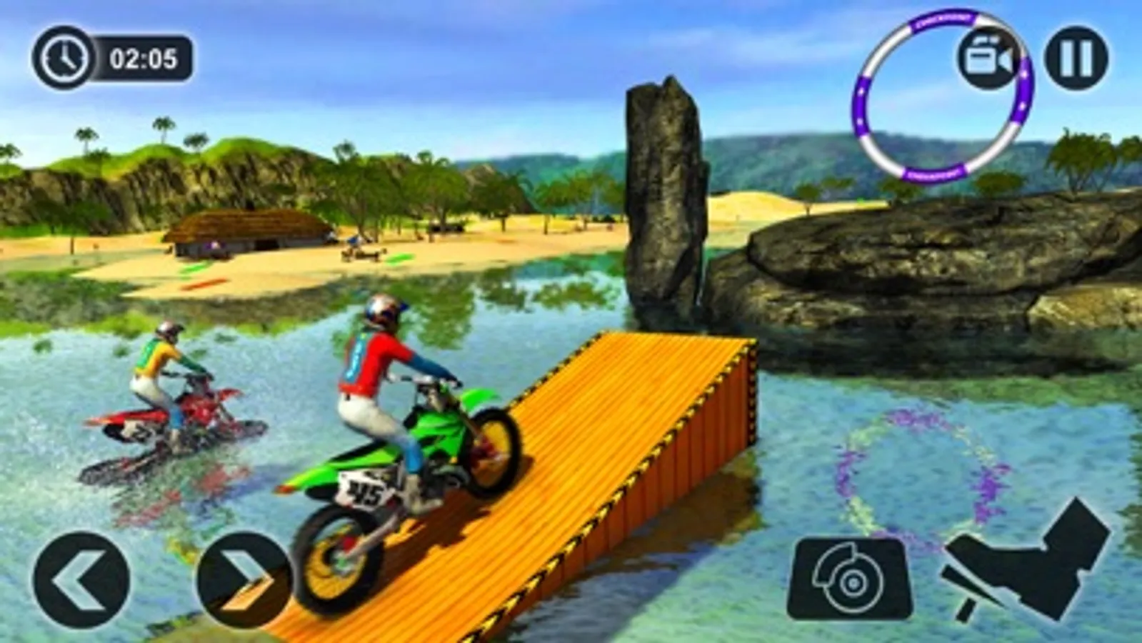 In Free mode ride your surfing bike with full speed to collect the check points on the beach sand. To unlock new wonderful luxurious motorbikes you have to win the bay race by driving floating motorbike through all checkpoints. Become the legend of beach racing by doing stunts and jumps with extreme modern motorbikes! Enjoy ocean rides with Beach Water Surfer Bike Racing.