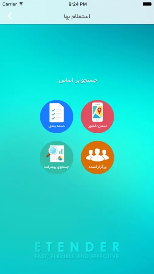 -قابلیت تفکیک بر اساس شاخه ، زیر شاخه ، کلید واژه ، مناقصه گزار و استان و کشور