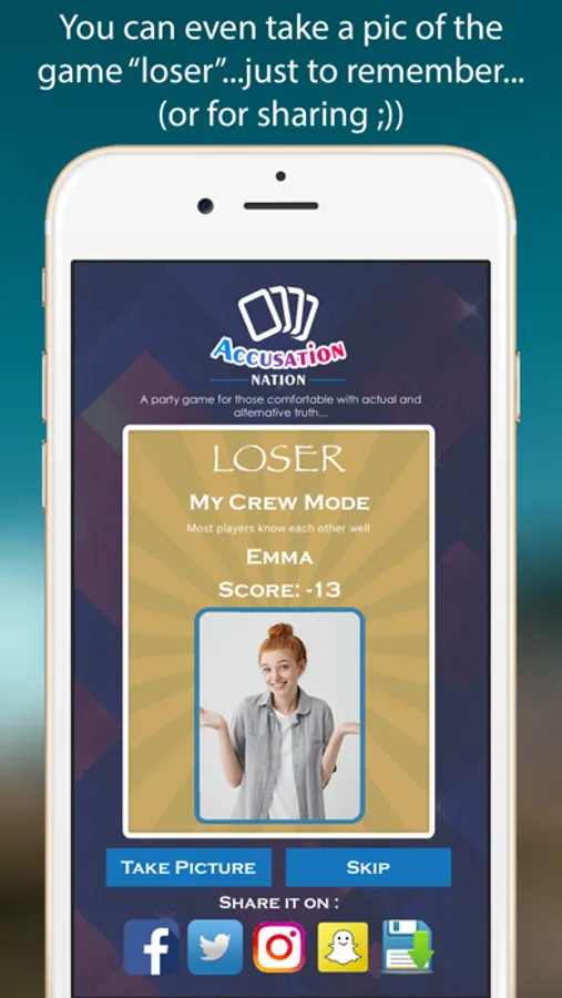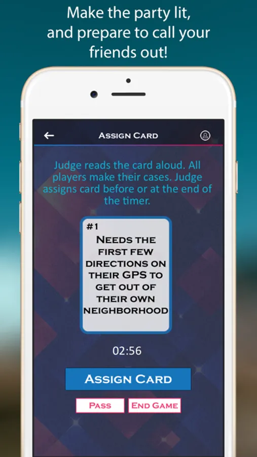The game is very simple. Players take turns being the Judge for the round (don’t worry, everyone gets a turn). The Judge draws a card, and each player gets a chance to plead their case as to why they DON’T deserve to be associated with the card. The Judge makes his/her ruling (using the in-game timer is optional), and that player is awarded a negative point. The first player to reach -7 points (can be changed) is declared the LOSER (and you can take a pic of them with the LOSER label for your socials ;))! Alternatively, the game can be played in “Ice Breaker” mode for groups that don’t know each other well. In this mode, players lobby FOR the cards, and you earn positive points towards +7 points total.