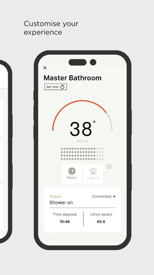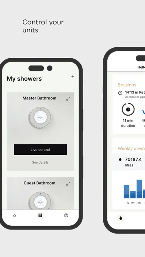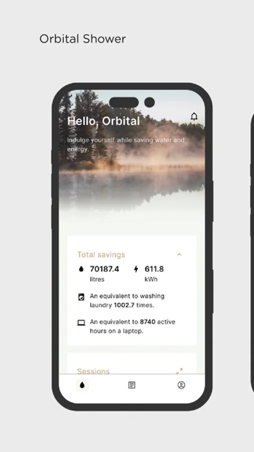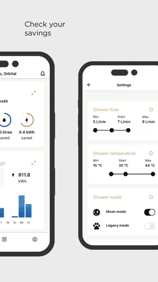 The My Water app tracks the performance of your Orbital Shower including water saved and consumed.