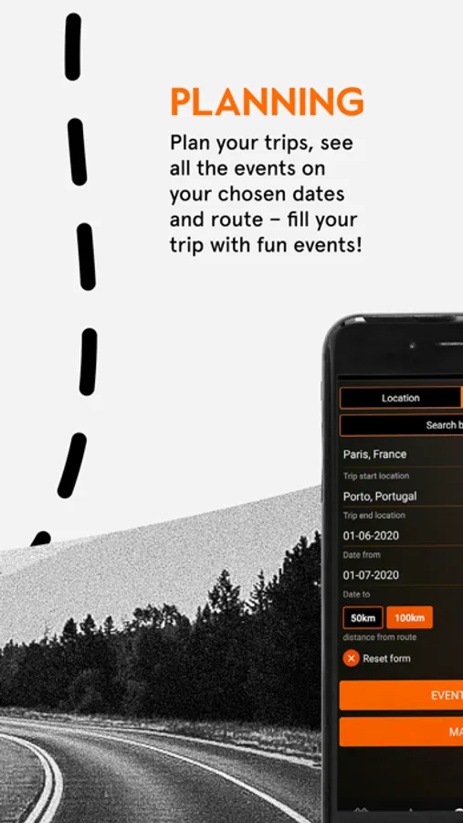 2. Plan your trips, see all the events on your chosen dates and route – fill your trip with fun events!