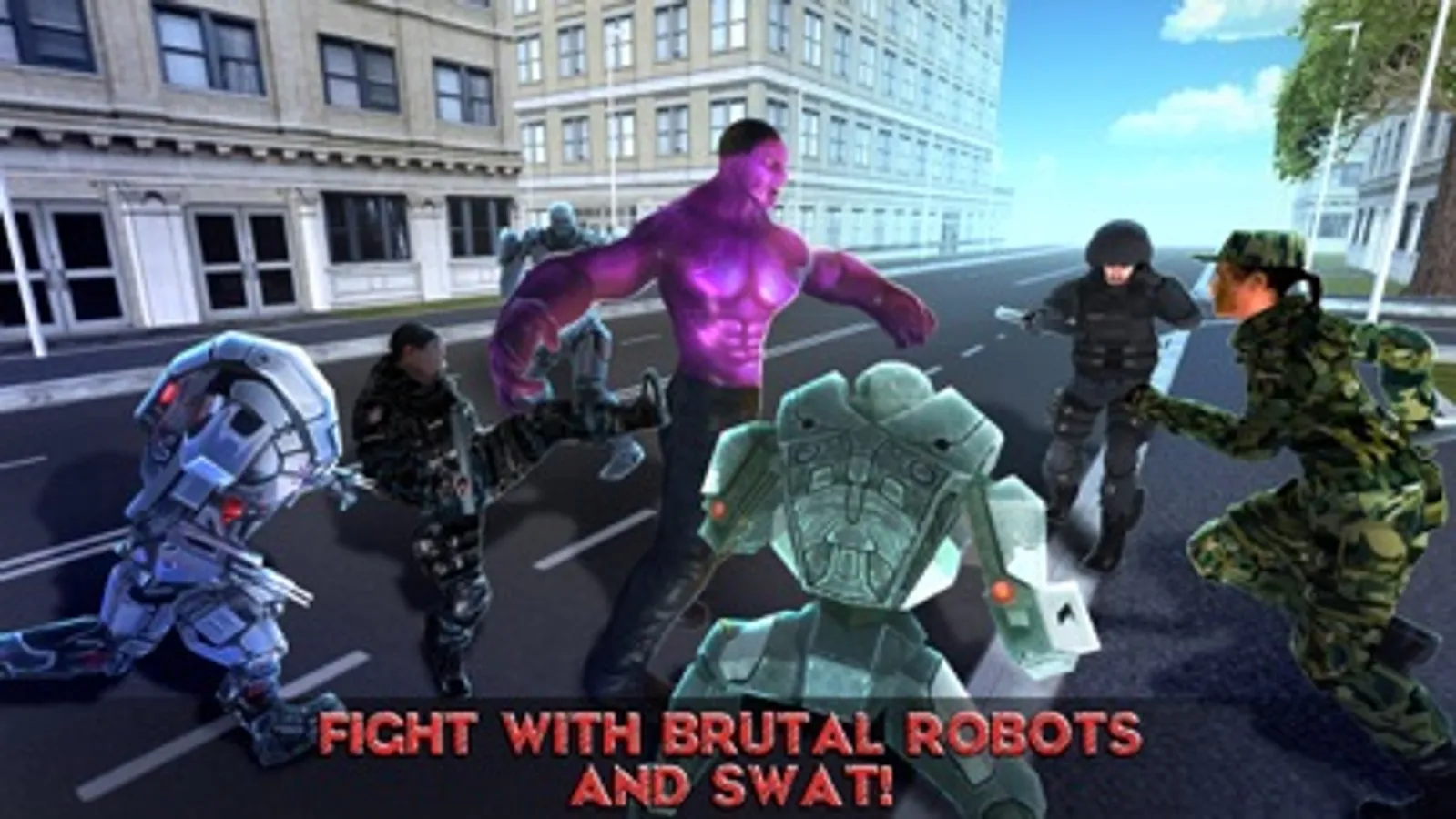 Welcome to the bright modern city full of cruel monsters and aggressive police robots! Rebel against human beings represented by the police, army and even SWAT being a fantastically mighty mutant! Chase people, fight with brutal robots and military forces, deliberate destruction and have fun with Incredible Green Mutant Hero Fight!