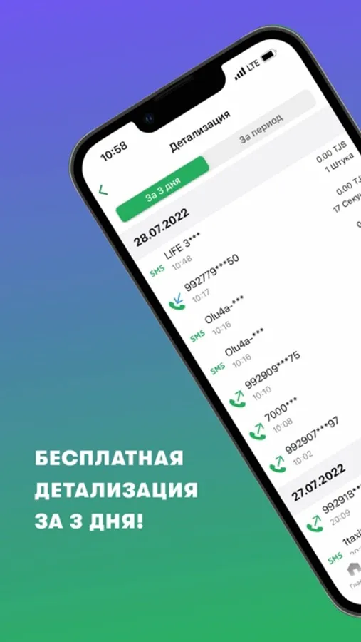 • Бесплатный просмотр детализации за 3 дня и загрузка в формате pdf прямо в телефоне.