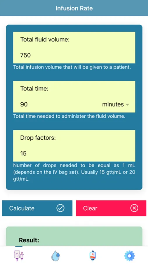 - A simple, accurate, and straightforward infusion calculator for intravenous drip.