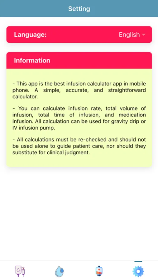 Disclaimer: all calculations must be re-checked and should not be used alone to guide patient care, nor should they substitute for clinical judgment. Calculations in this "Pocket Infusion Calculator: IV Pump and Drip Rate" app might be different with your local practice. Consult to expert doctor whenever necessary.