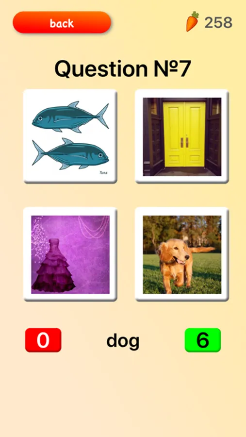 Two tests to test knowledge. For now only for 47 words (1st level). For passing tests are awards that can be spent on the game.