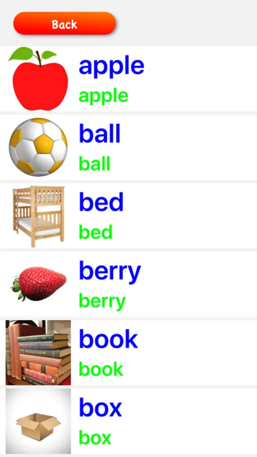 English dictionary for children from four years. Contains 346 simple English words. Each word corresponds to three photos and one audio pronunciation of the word.