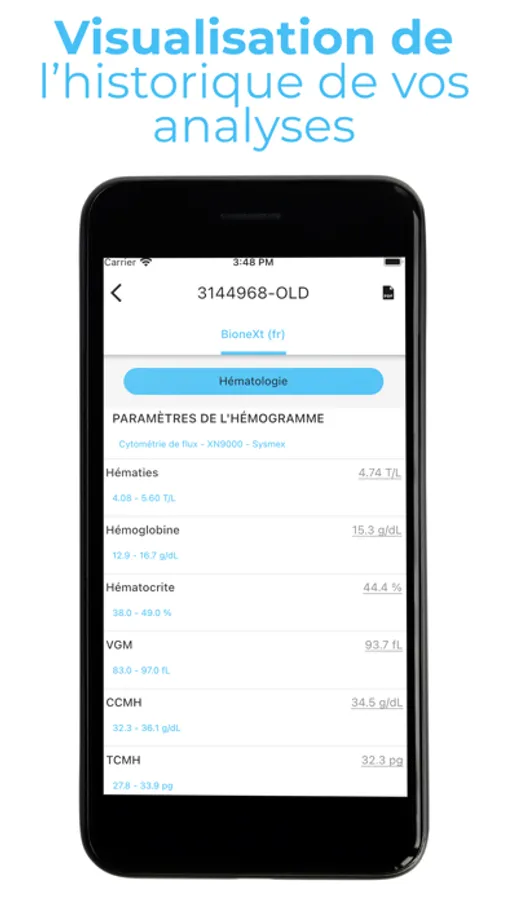 Totalement sécurisé, l'accès aux résultats est des plus simples avec Touch ID ou Face ID.
