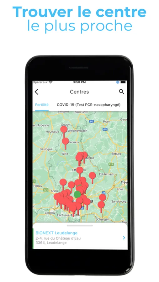 • de consulter l'historique de leurs analyses, de trouver les centres de prélèvement ouverts les plus proches par géolocalisation