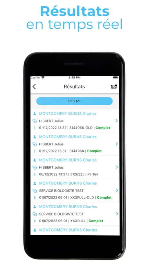 • d'accéder de façon sécurisée aux derniers résultats de leurs patients avec une mise en avant automatique des résultats perturbés ou non lus