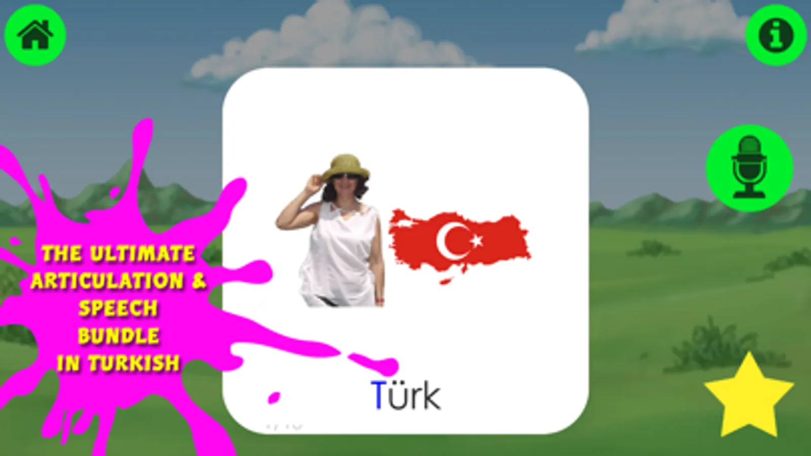 It is a complete articulation program offering at the word and phrase level 21 sounds in the Turkish. Seven engaging activities are presented via over 1600 real photographs isolated on a white background that are easy to identify. The whole program is based on standard Istanbul Turkish.