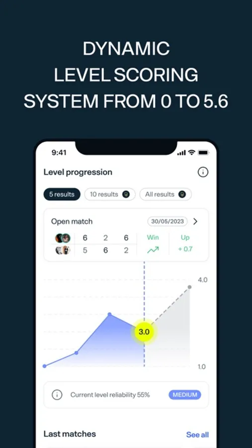 Make the most of your performance data and get advanced padel stats. Check out detailed info on your performance, matches, sets, and other interesting metrics. Track your best winning streak, identify your most challenging opponent, and compare your performance with other padel players.