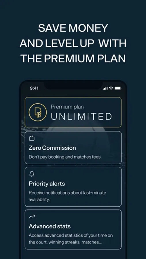 Once you join Premium, you can enjoy a limitless experience. Save money on every transaction and avoid additional court booking fees. Furthermore, you will receive personalized priority alerts. You will be able to select which notifications you want to receive according to your preferences so that you stay up to date on matches, courts, and last-minute opportunities. Your time is money, and it is valuable to us too!