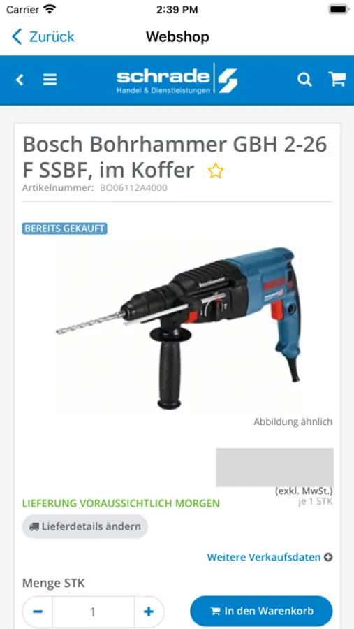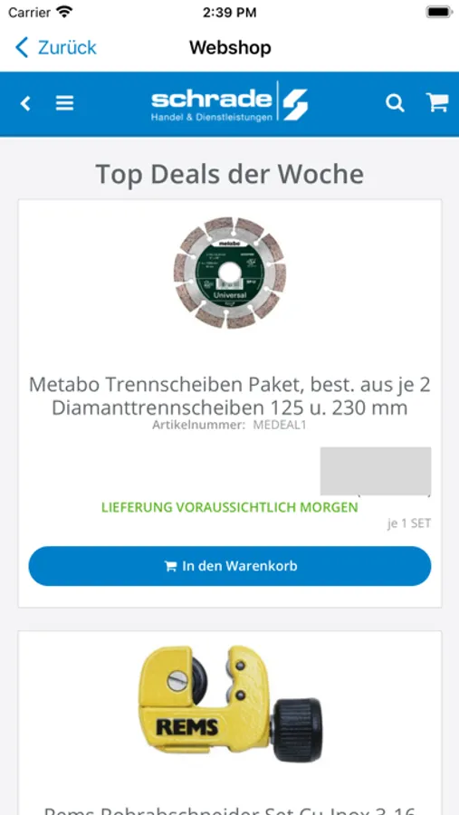Schrade24 bietet Einblick in das gesamte Online-Sortiment der C. Schrade GmbH und ermöglicht die einfache und schnelle Artikelsuche sowie eine komfortable Bestellabwicklung. Um die Artikelsuche so einfach wie möglich zu gestalten, verfügt Schrade24 außerdem über eine Scanner-Funktion. Hierbei kann einfach der Artikelbarcode gescannt und der Artikel über Schrade24 bestellt werden.