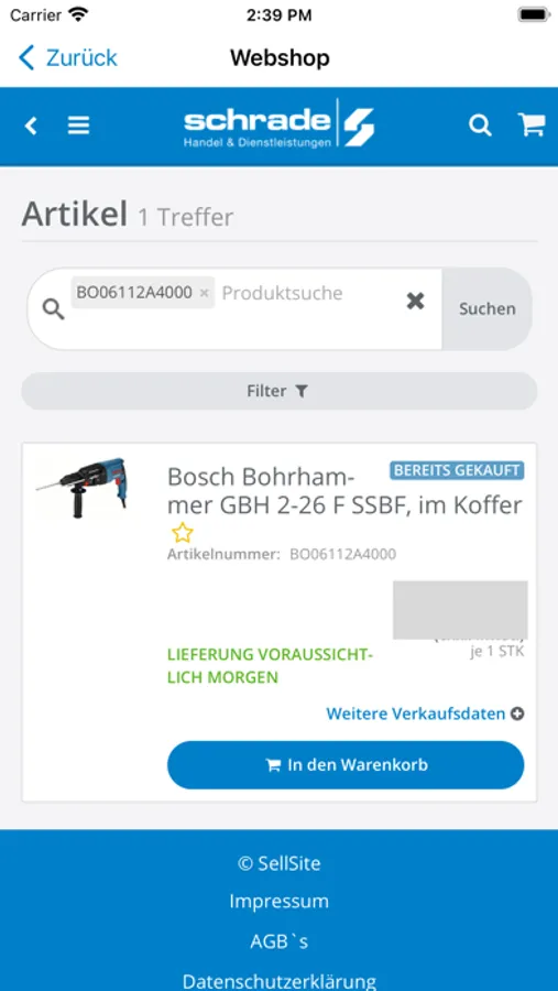 Schrade24 – Das Online-Angebot der C. Schrade GmbH auf Basis des Shopsystems SellSite.