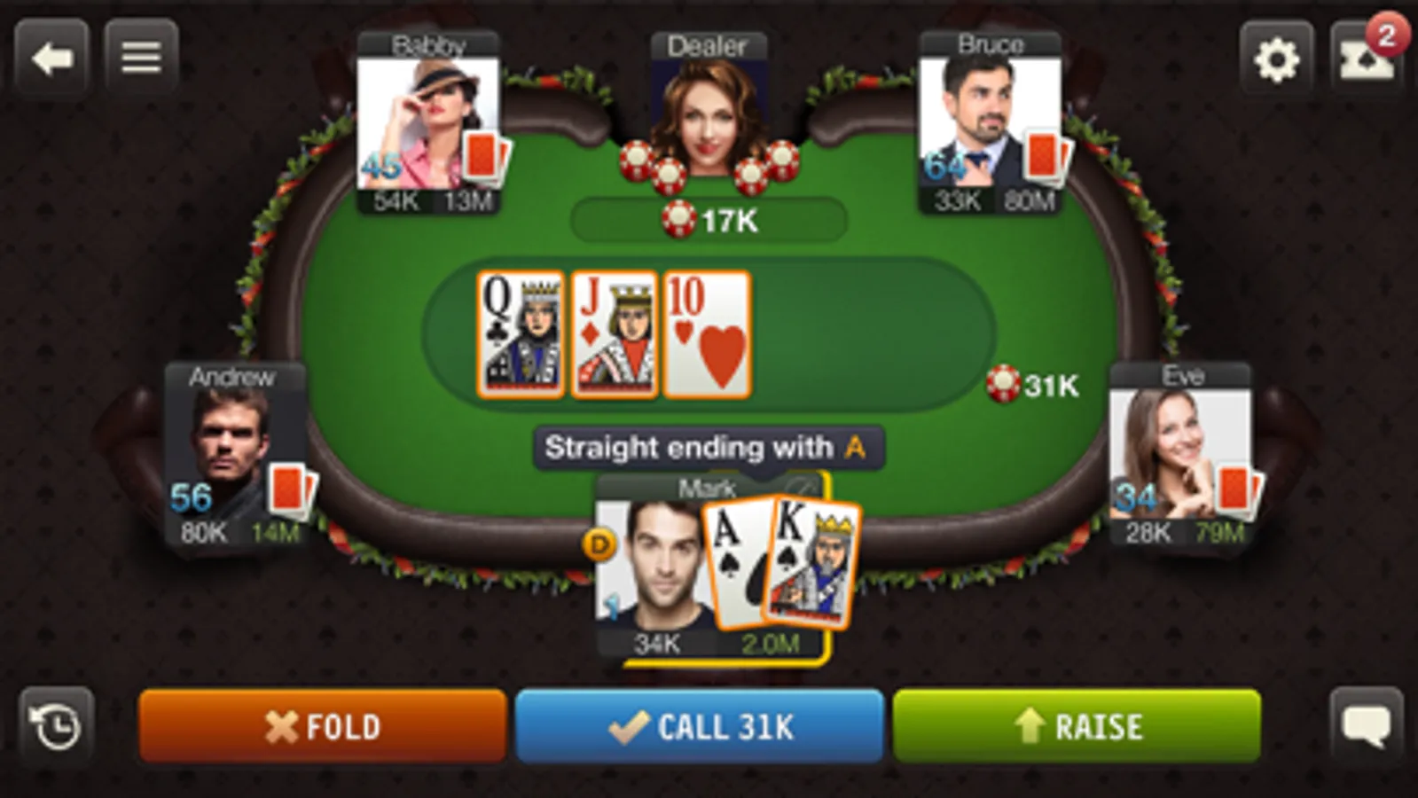 To hype up the experience and the thrill we’ve prepared all sorts of surprises and bonuses for our players: complete themed collections by playing in different poker rooms and exchange them for game currency; send gifts to your friends and receive kind gestures in return; use the chat to talk to other players and aim high in the top charts of our club. Prove to millions of other players that you’re on the very top of your poker game.