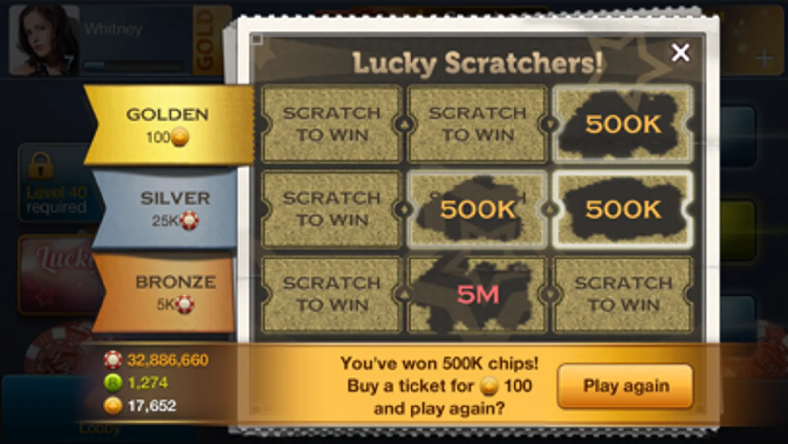Practice or success at social casino gaming does not imply future success at real money gambling.