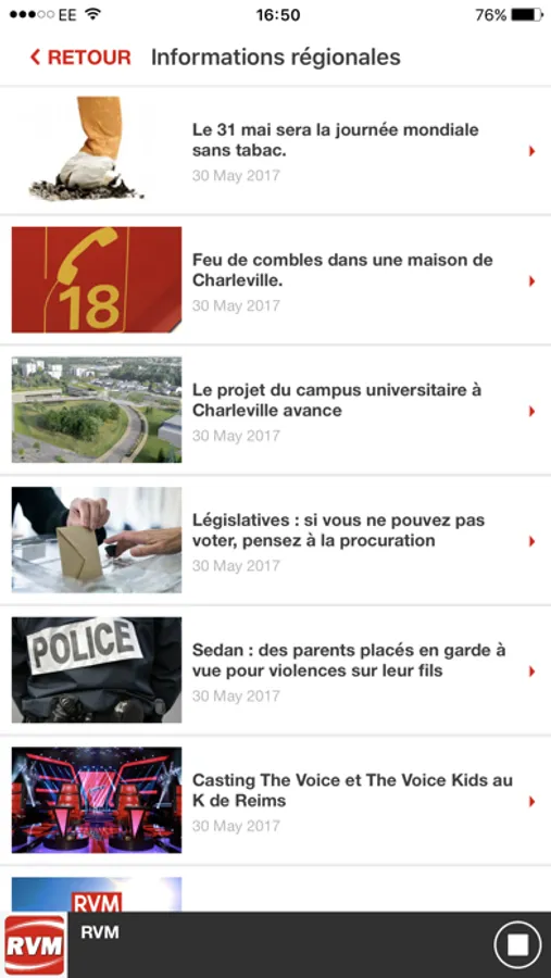 - Réveillez-vous au son d’RVM grâce au réveil dans l’appli !