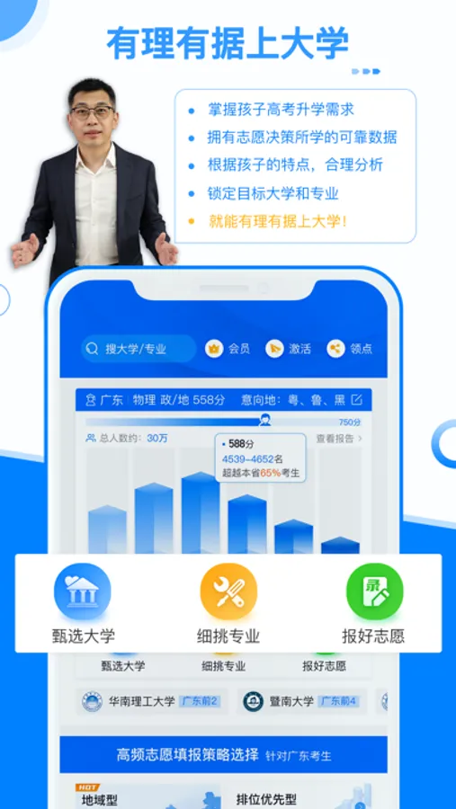 1.考生和家长会用,好用,有用,爱用的升学规划志愿填报辅助决策应用;