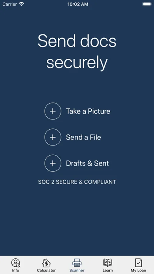 -a document scanner so you can easily upload pertinent information, simply take a picture of the document, and it’s securely encrypted into a PDF that is then uploaded to your loan officer. This is very useful when email or fax are unavailable!