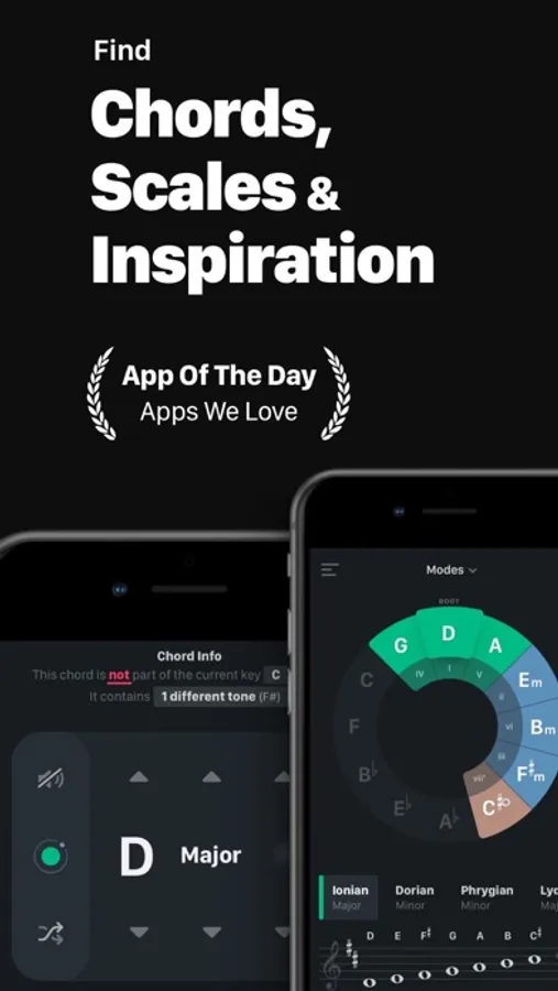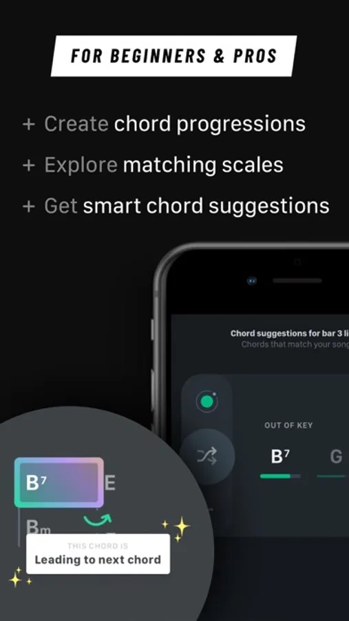 This app is for musicians of all kinds, songwriters, and producers. Beginners and advanced. No matter if it's your intention to get better on your instrument or playfully find chords and inspiration for your songs or productions.