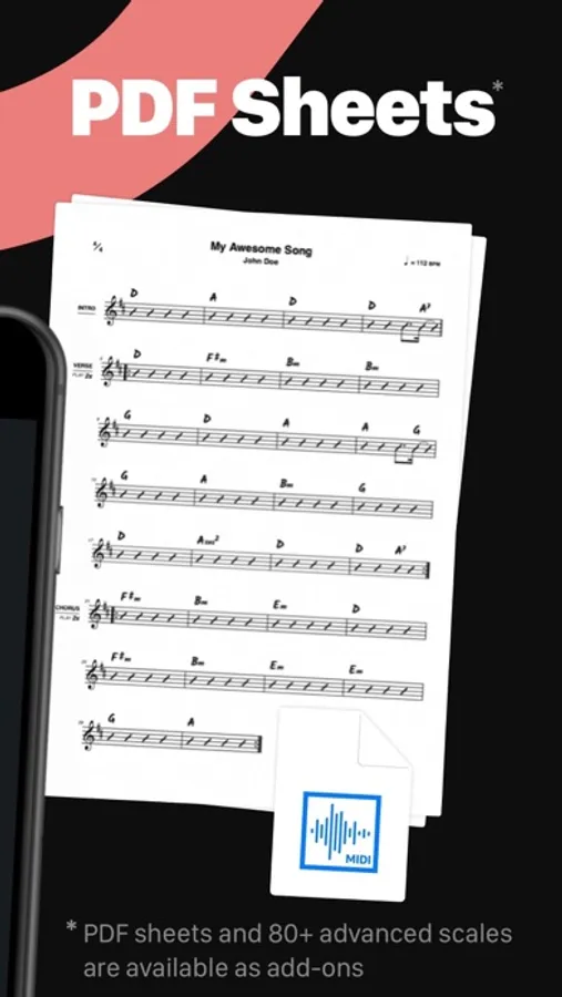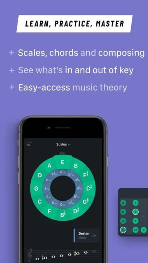▶ Learn chords and scales*, get easy access to music theory!