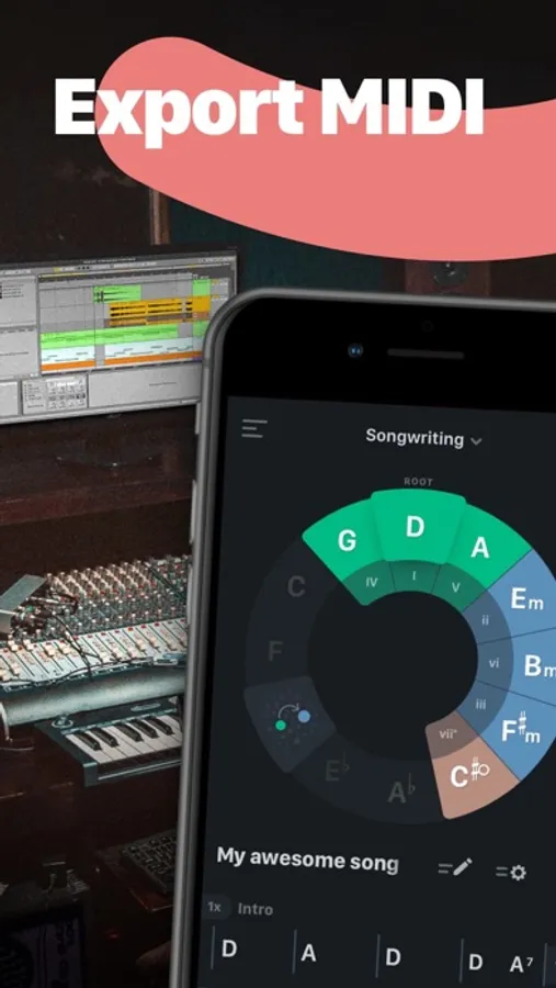 Export songs as MIDI and work with them in Ableton, Garage Band, or any other digital audio workstation.