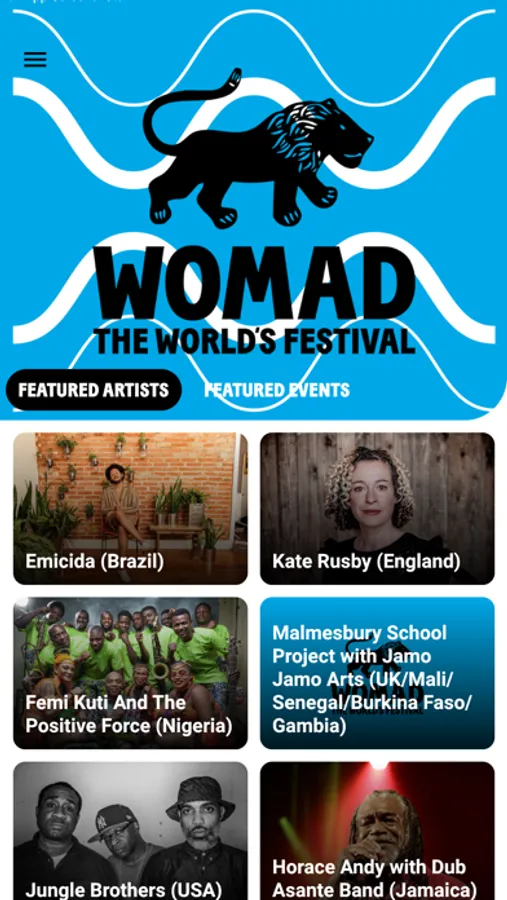 When The Drummers of Burundi leapt into the first WOMAD festival in 1982, the audience were wowed. And year on year, WOMAD has continued to astonish and open the eyes of you, our enthusiastic audience. This year we invite you to celebrate with us and experience the brilliance of our world festival with the help of this app.