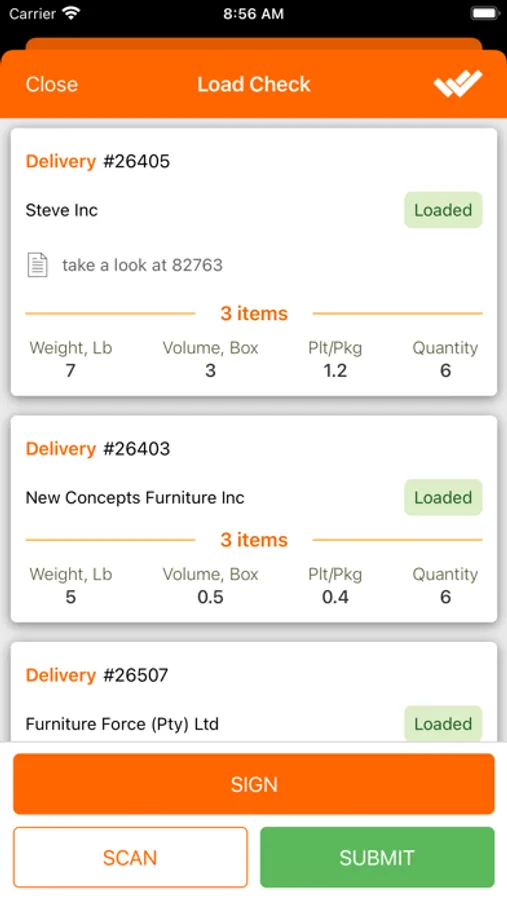 - Multiple deliveries and loading (collection/pick up) at the same location