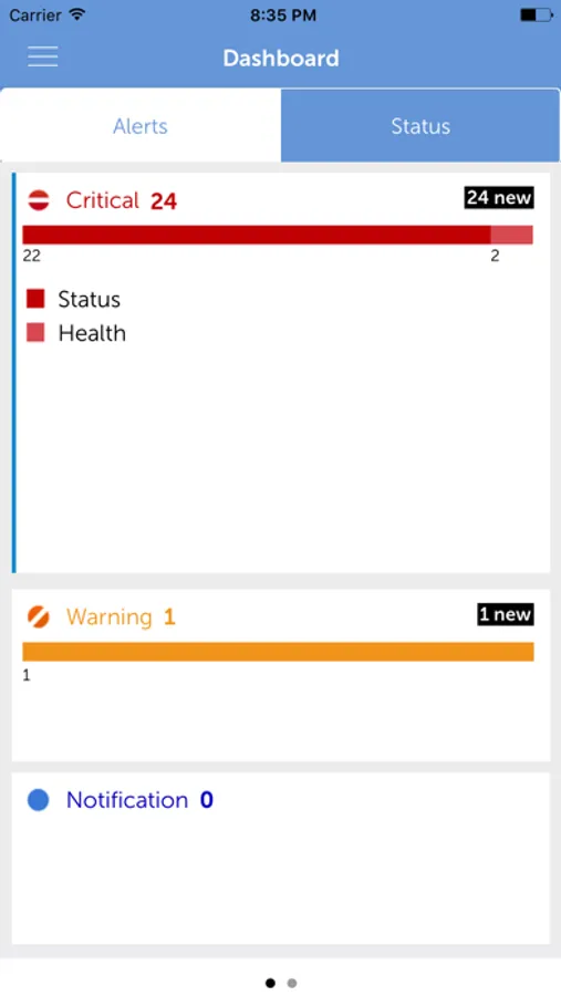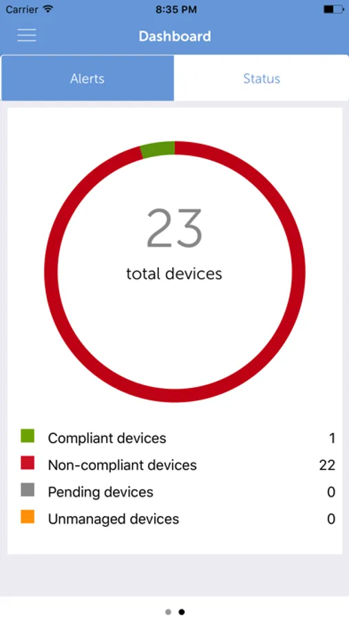 - Dashboard to view alerts by severity and device summary