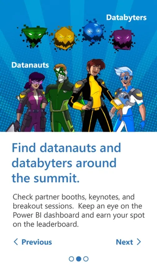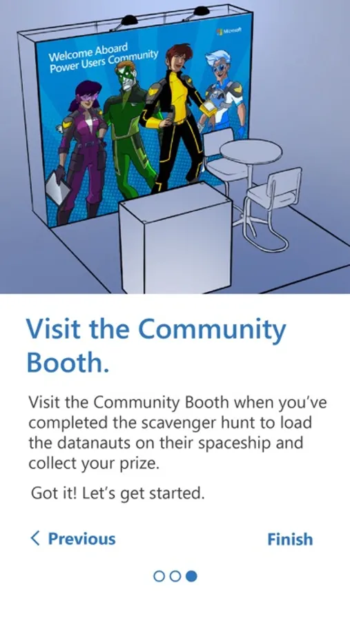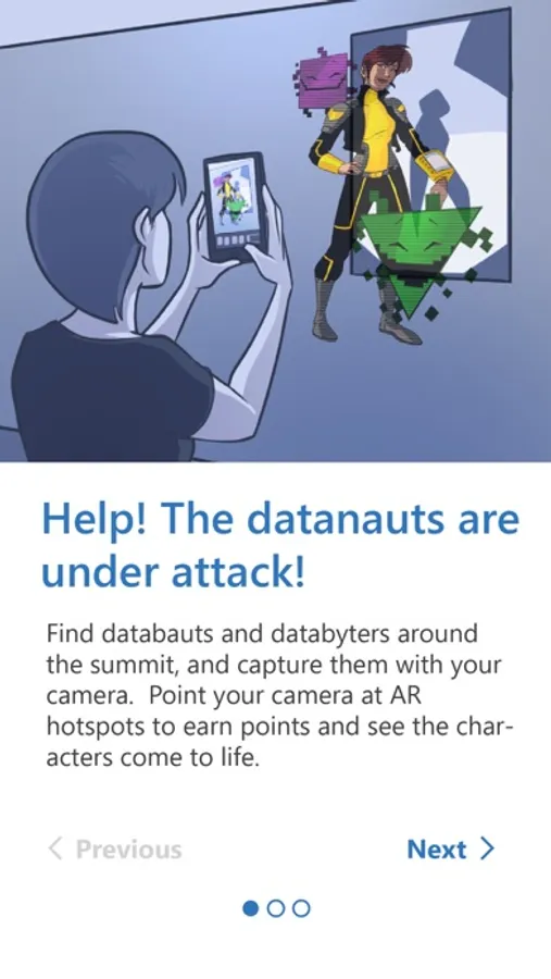 Combining the real-life conference experience with an app-based AR experience, the AR Conference Scavenger Hunt challenges users to find product-based posters and printed hotspots hidden around a conference. Posters and hotspots are located at keynotes, partner booths, and breakout sessions. Scanning a poster or hotspot provides an AR experience, and allows the user to earn points. Point totals are saved to a Power BI Dashboard that allows users to see their progress compared to the other attendees.