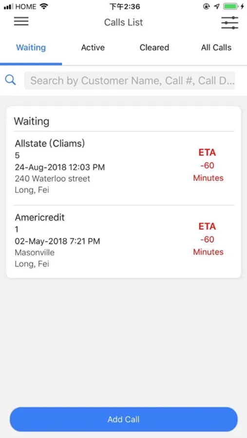 - Change status' of assigned calls