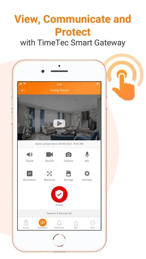 -View your premises, 2-way communication with your members, arm and disarm alarm via the function page of i-TimeTec Smart Camera Gateway