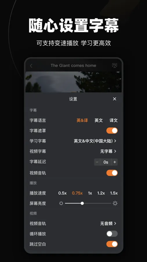 •字幕一键隐藏:在视频播放过程可设置全部或者某条字幕的隐藏或显示。您也可以选择无字幕观看视频,在遇到听不懂的句子时单独显示某条字幕。