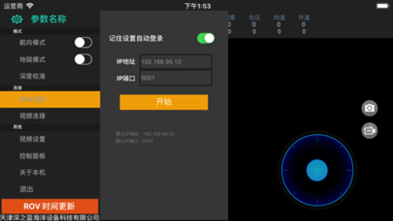 APP需要与我公司(天津深之蓝海洋设备科技有限公司)提供的ROV共同使用。