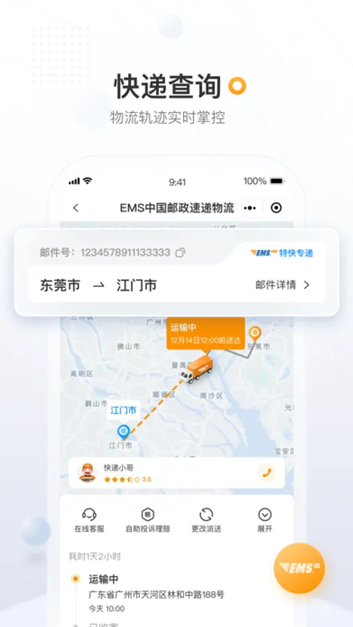 EMS是由中国邮政速递物流有限公司开发的一款快递服务应用,秉承 “全心、全速、全球”的核心服务理念,为客户提供自助下单、订单管理、特色服务等一站式掌上便捷快件服务。