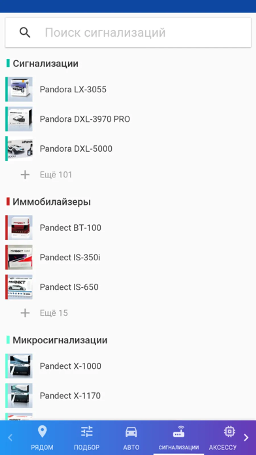 • Список точек продажи и установки Pandora/PanDECT в вашем городе