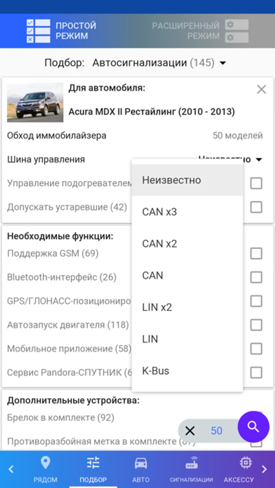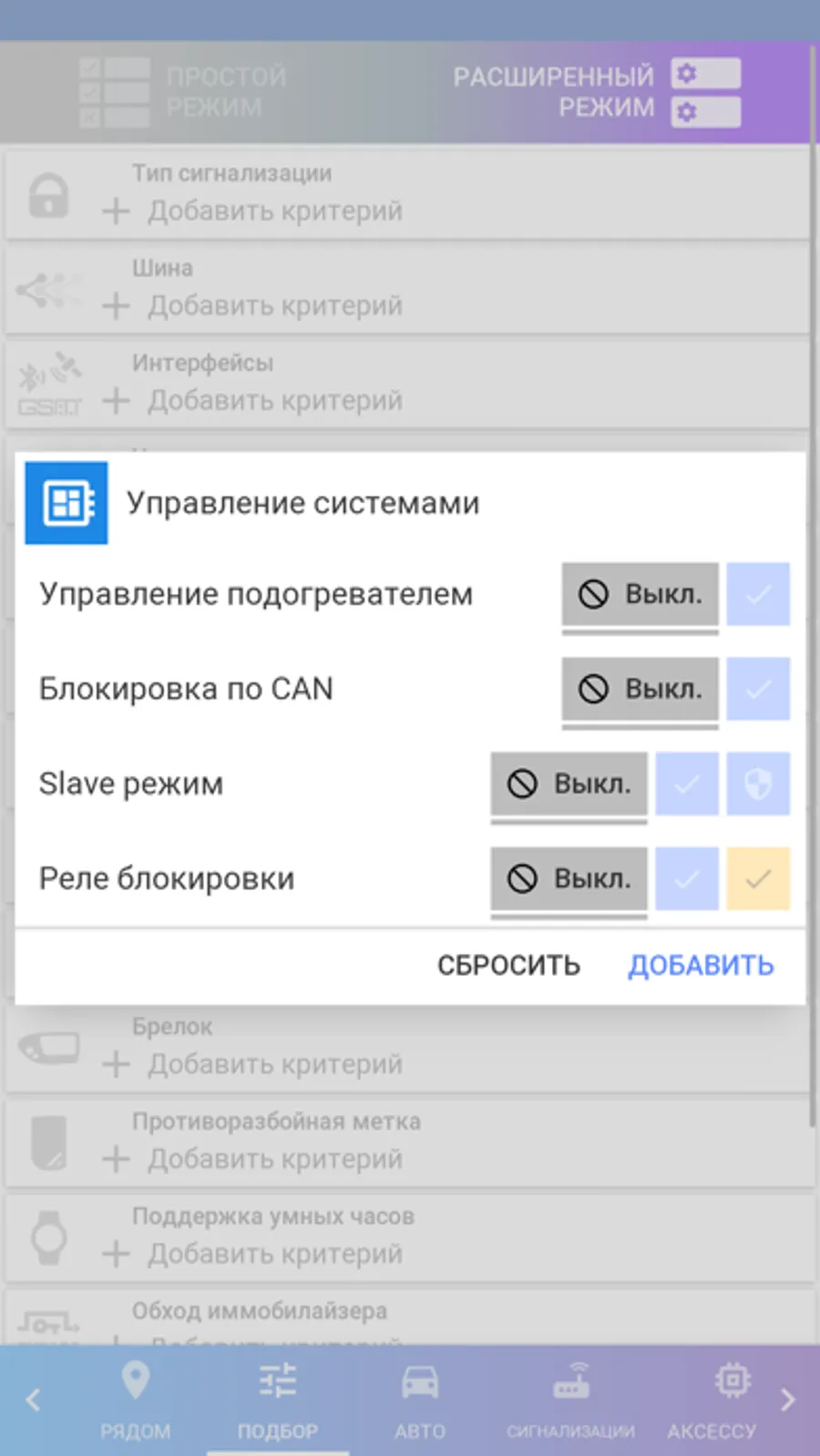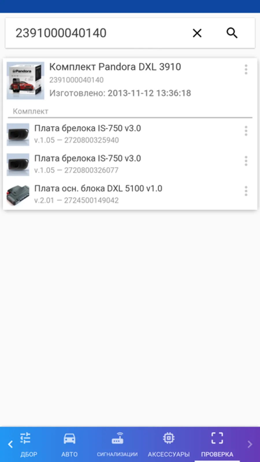 • Проверка совместимости комплектующих (например, совместимость брелка и сигнализации)