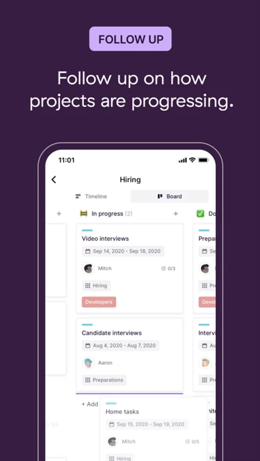 Use Toggl Plan's time estimates to set realistic project deadlines. See your team's workloads and assign tasks without over or underworking team members. Track project progress through task status updates and notifications. Most importantly, bring clarity to your team's work.