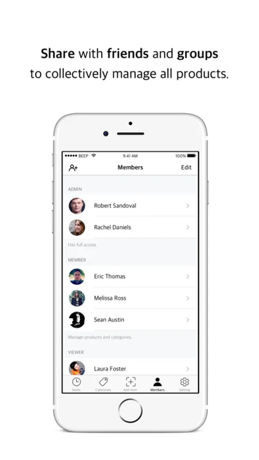 Scans can be shared with others to collectively track of products. Invite family, colleagues or anyone via email and/or phone numbers to start your own group.