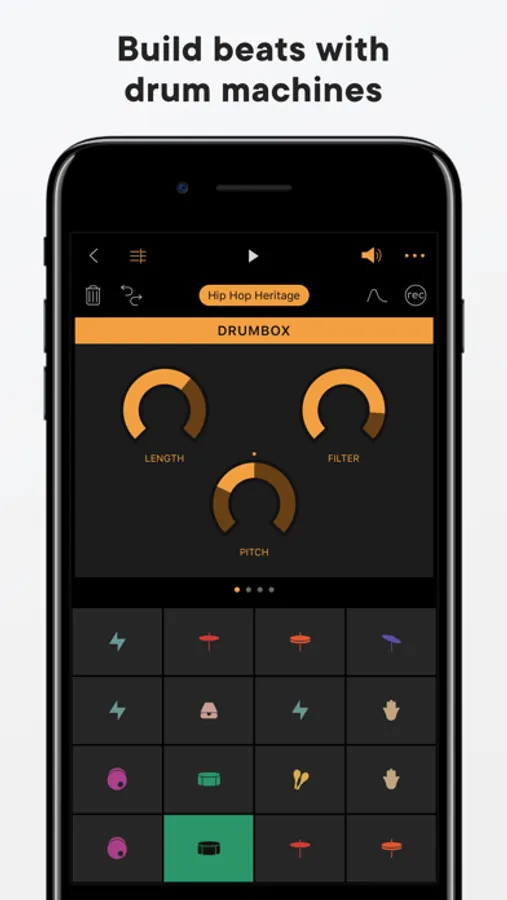 • Build beats - Play drum pads or keys, sequence notes or use patterns
