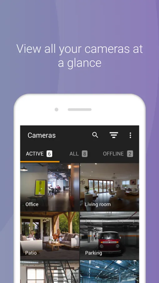• receive automatic push- and e-mail notifications of suspicious movements or sounds