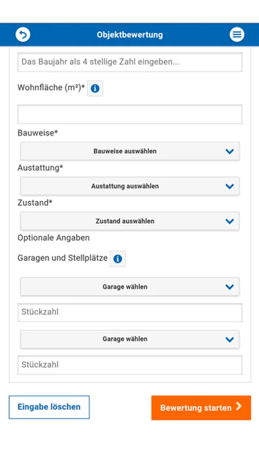 - Objekte die saniert/modernisiert wurden tragen Sie bitte mit dem ursprünglichen Baujahr ein und setzen dann Ausstattung / Zustand entsprechend "besser".
