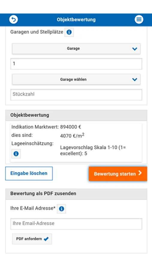- PDF Versand ihrer Bewertung an eine Mailadresse.