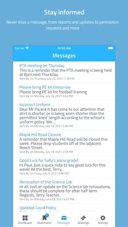 • Instantly receive the latest news and announcements from school