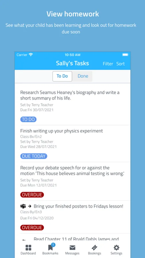 You’ll be able to see when homework is set, when it is due and have easy access to the same learning resources your child is using. You can also get important announcements and messages, such as for upcoming school trips, or Parents’ Evenings straight to your phone.