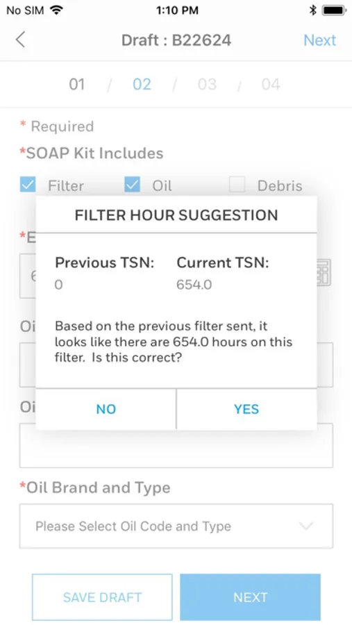 • Filter Hours Wizard – the app makes it easy to provide Filter Hours; just tell it the current TSN and it will calculate the Filter Hours by pulling the previous sample from our database