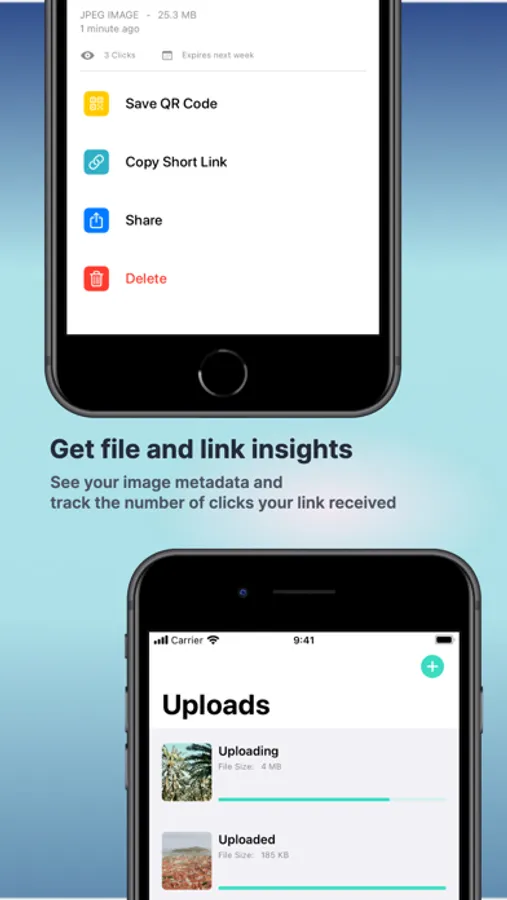 In addition to sharing options, our app also allows you to easily browse and manage your uploaded images. Need to delete some to declutter your library? No problem. And with our link and visit tracking feature, you can see just how many people are viewing your images and where they're coming from.